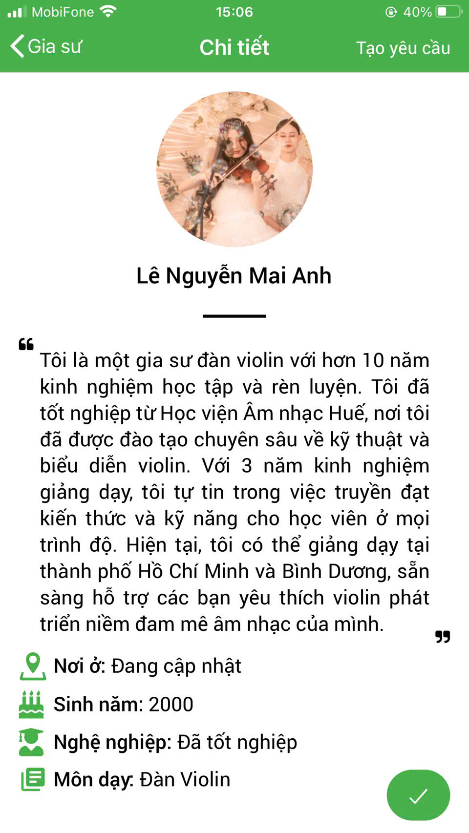 XEM HỒ SƠ GIA SƯ DẠY KÈM VIOLIN >>