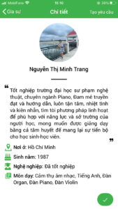 • Sinh viên Nhạc viện, Học viện Âm nhạc có kỹ năng sư phạm, nhiệt tình truyền đạt.