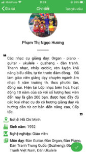 Gia sư là nghệ sĩ đàn tranh, giáo viên nhạc dân tộc hoặc sinh viên xuất sắc từ Nhạc viện TP.HCM, Học viện Âm nhạc Quốc gia, các trung tâm âm nhạc chuyên nghiệp.